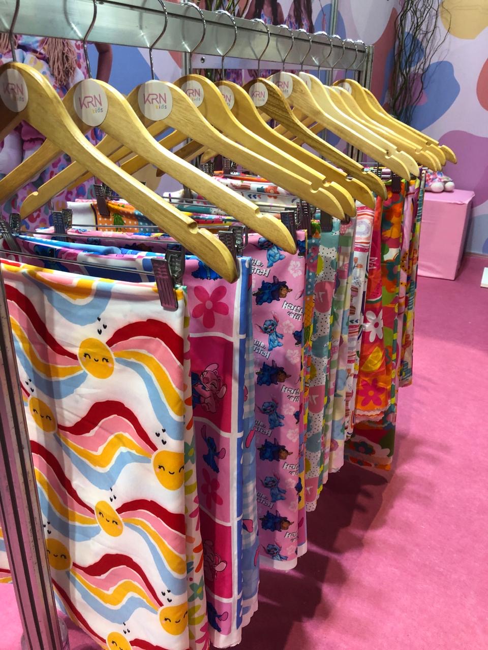 A Pibiti trabalha com tamanhos que vão do bebê ao 12, em peças de algodão, brim, linho, flamê e viscose. Destaque para as bermudas em sarja com cinto, camisas com listras ou xadrezes e cores como o off white, azul e rosa bebê. KRN Kids traz estampas exclusivas ou produzidas de acordo com a coleção de cada cliente. Há opções no animal print, florais e geométricos.
