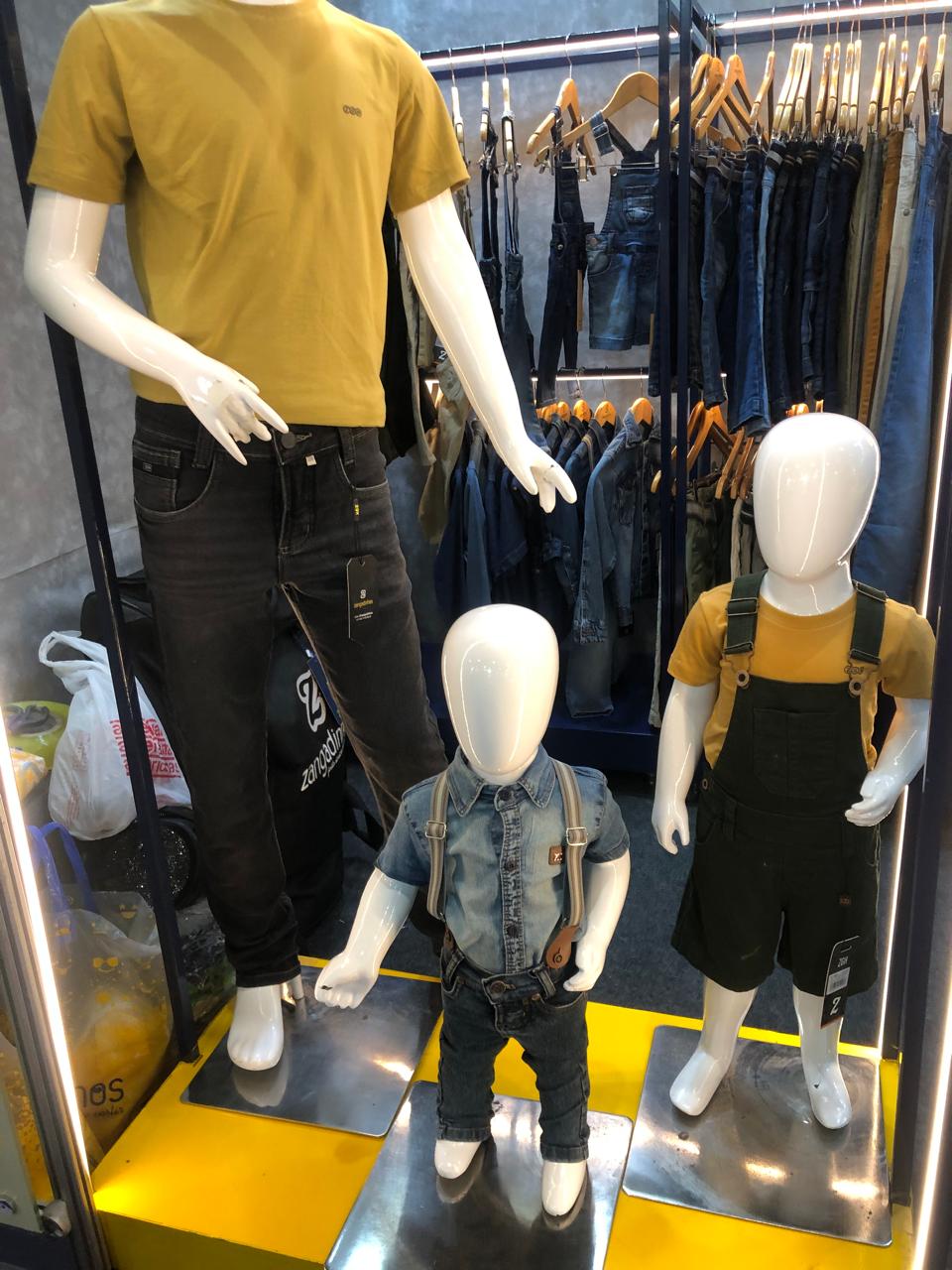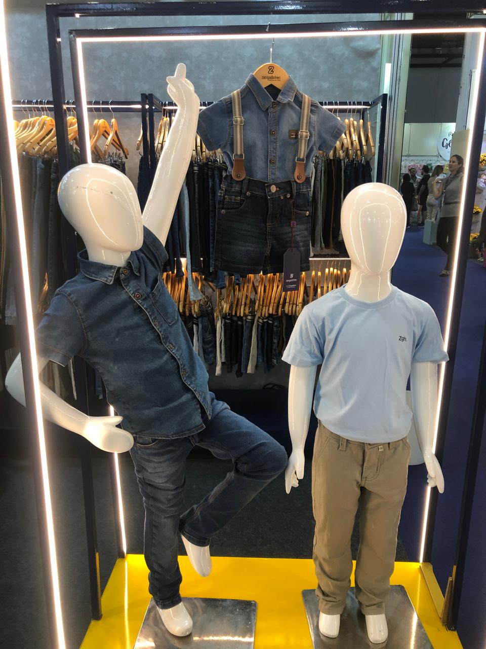 A Zangadinhos aposta no masculino com numeração que vai dos 6 meses até 18 anos. A marca, também de Caruaru, trabalha com tecidos que ganham toque suave como o algodão peletizado em peças com muita informação de moda, sem exageros, com uma lavanderia clean ou com marmorizados e descarregamento de cor. Os fits, queridinhos dos meninos são a jogger, cargo, reta e skinny, sempre com reguladores. Destaque ainda para as jardineiras em tons como o acinzentado, jaquetas com pontos de luz, camisas com pespontos contrastantes ou no 100% algodão, maleável. Os shorts, ora vêm com elástico na cintura e cordões, ora com aspecto de alfaiataria com o cós limpo.