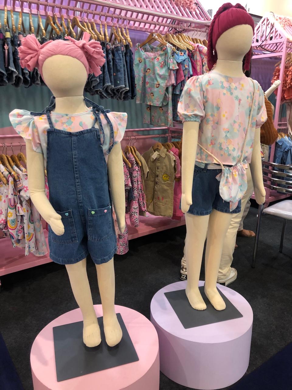 Flor de Menina é uma marca de Caruaru (PE) e produz peças para meninas, que vão do 2 ao 6, com destaque para os shortinhos em denim moletom com inúmeros detalhes como laços, cintos e aviamentos. Já a Kikarinho Moda Bebê traz as tendências para os menorzinhos como o macaquinho ou a camisa com manchas esbranquiçadas, além de calças e vestidos leves no denim raw com ranhuras.